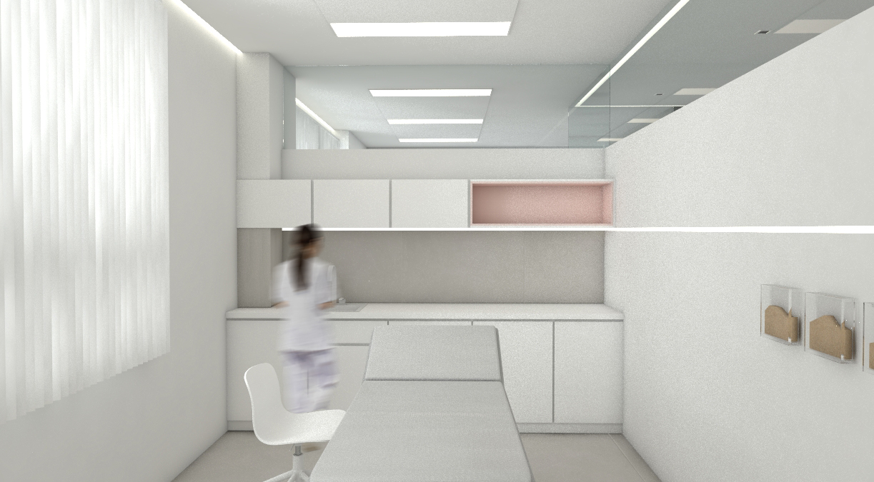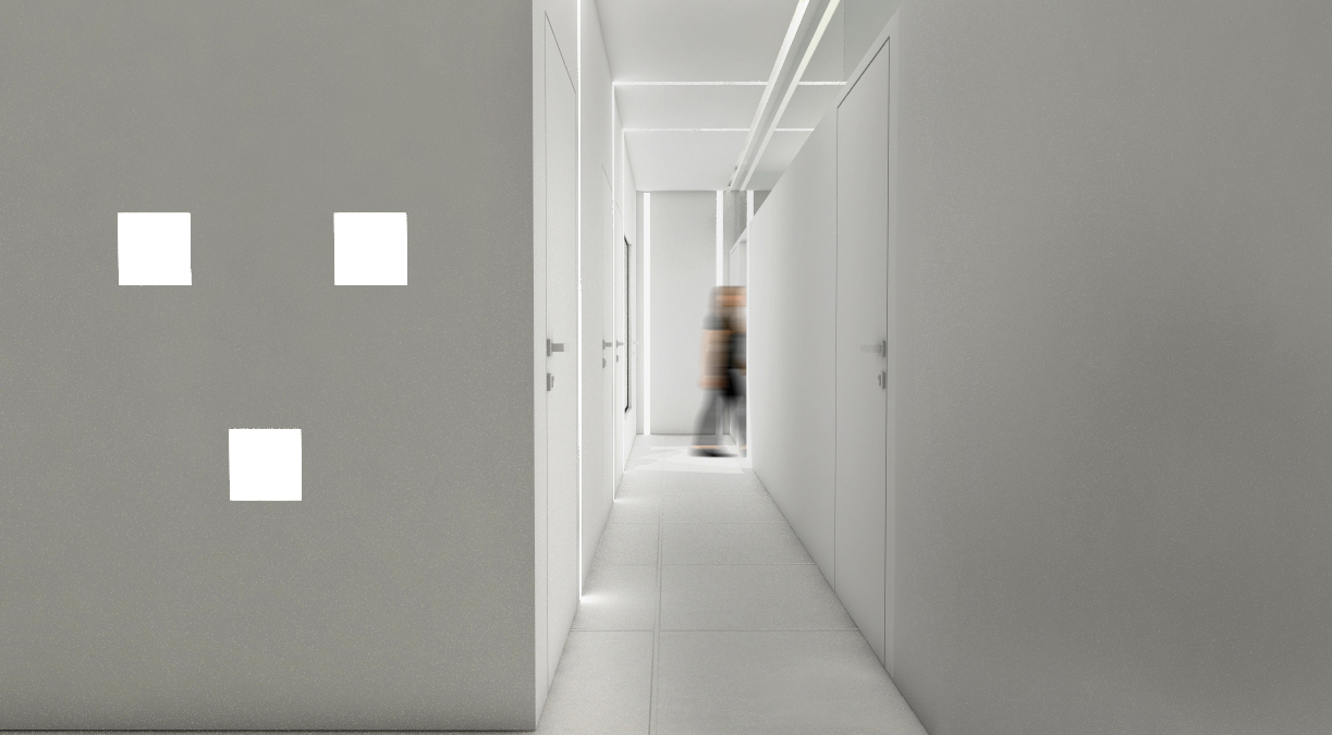 The aim was the unobstructed inflow of natural light in all areas of the clinic, which is achieved through the use of transparent elements (skylights in the surgeries, etc.) While, emphasis was placed on the lighting design and the intensities created through the different sources of artificial lighting.
