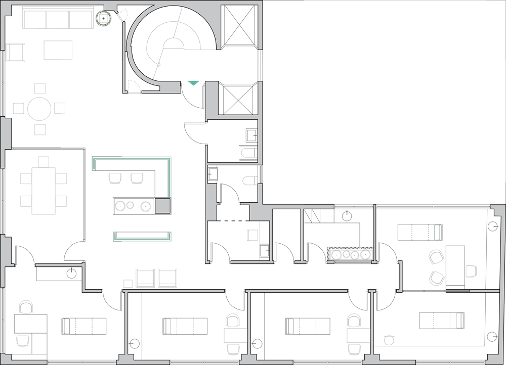 Η βασική ιδέα εξυπηρετείται μινιμαλιστικά μέσα από την κυριαρχία του λευκού χρώματος, σε διαφορετικές υφές, συνδυάζοντας στοιχεία της φύσης, τα οποία εναρμονίζονται στο χώρο και εντάσσονται στον σχεδιασμό με εναλλακτικούς τρόπους, προσφέροντας ηρεμία.
