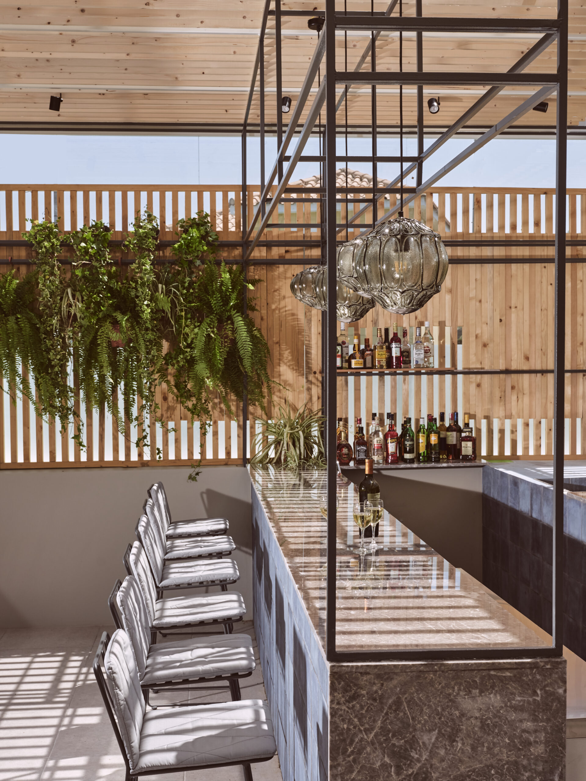 Η εμφανής στέγη στο εσωτερικό, η χρήση φυσικών υλικών, ξύλου, στα έπιπλα αλλά και λεπτομέρειες από μέταλλο είναι επίσης στοιχεία που προέρχονται από τις παραδοσιακές κατοικίες σχεδιασμένα με σύγχρονη ματιά.